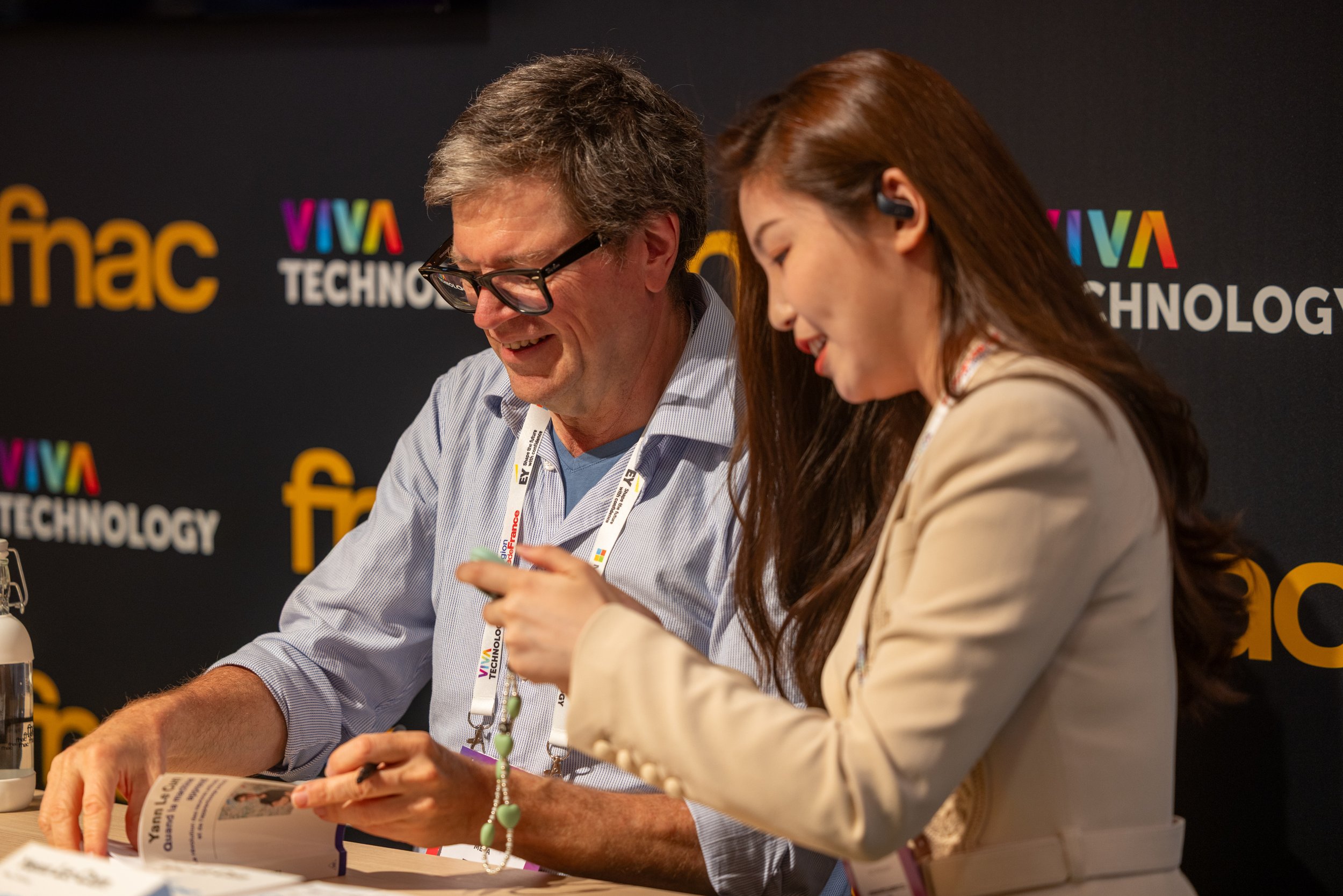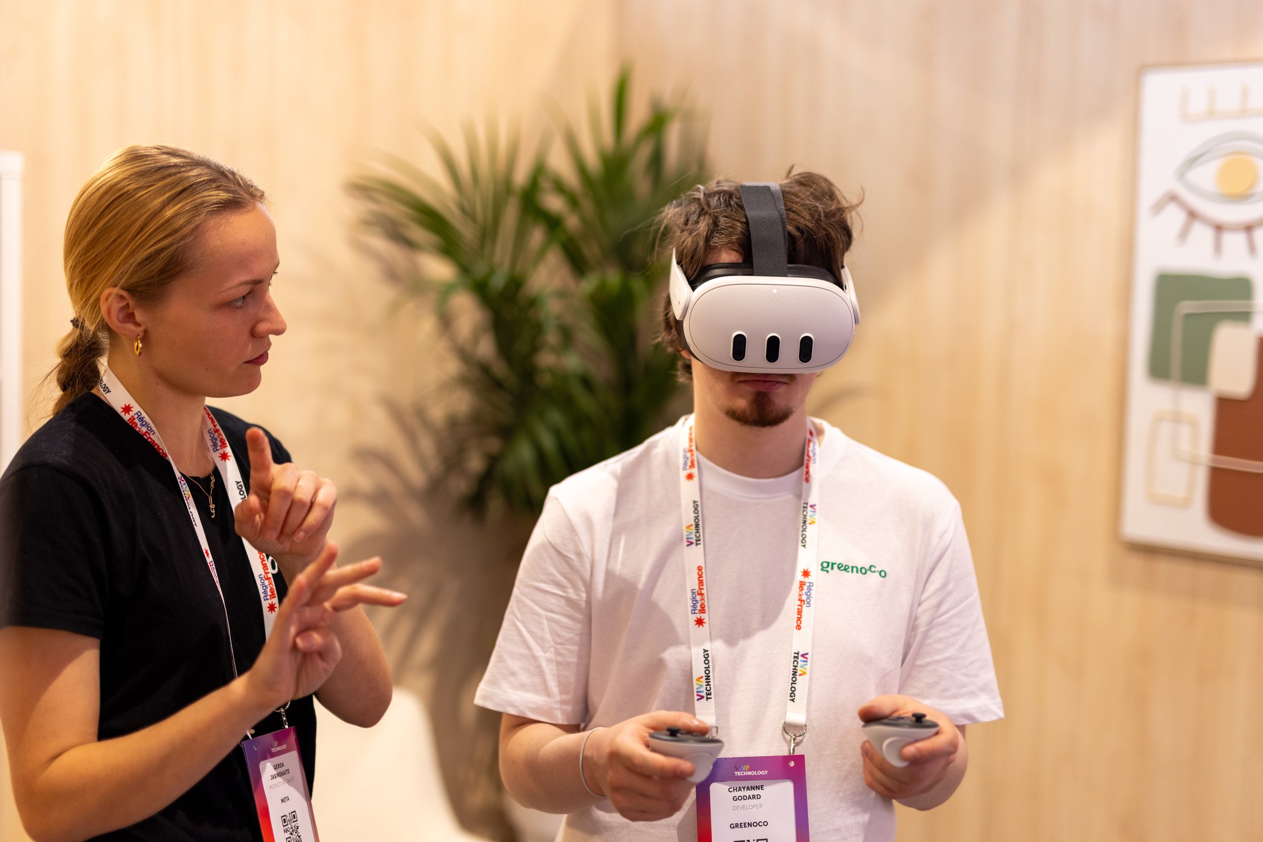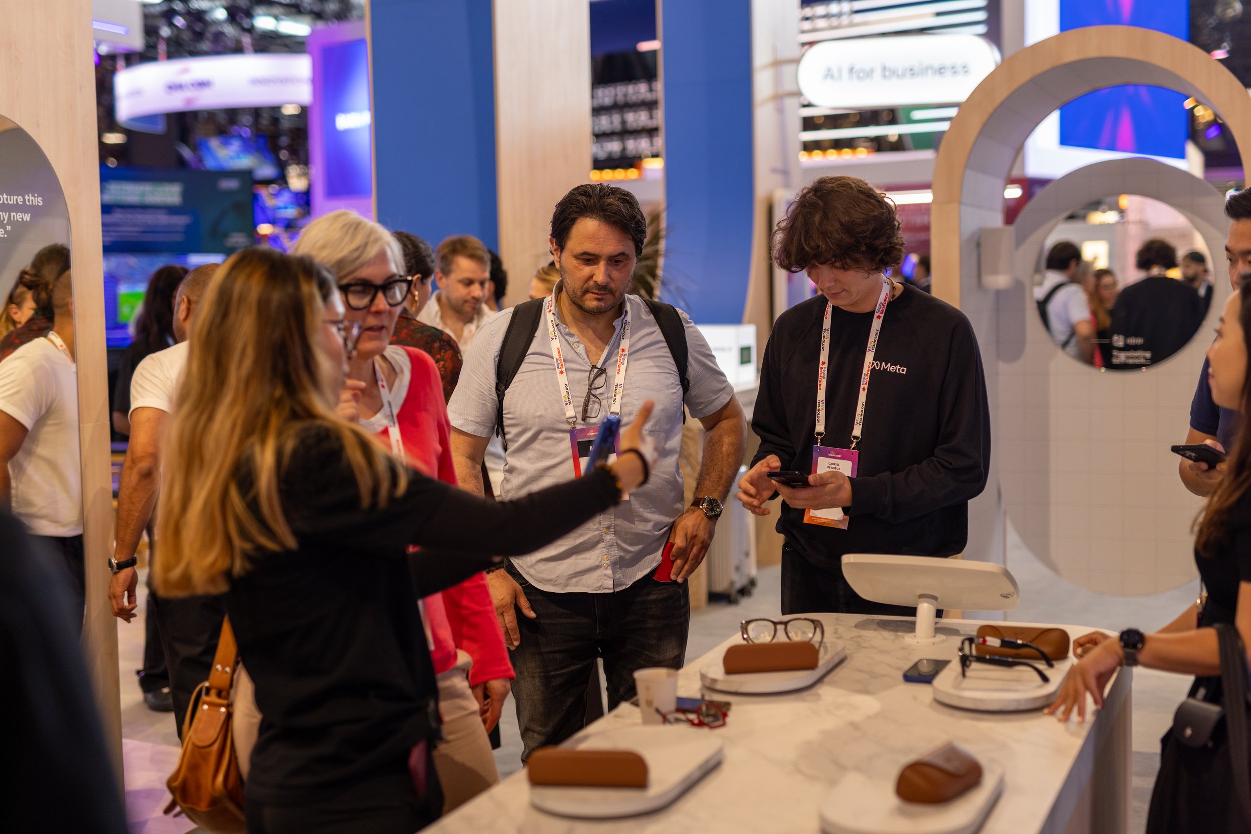 We combined open, inviting zones with more intimate demo areas to balance footfall with focus, using recycled materials and calm textures to contrast the chaos of VivaTech. The Atrium served as the epicenter, hosting over 30 speaker sessions. Around it, attendees interacted with Meta’s latest tools: from the custom Imagine Me activation to guided demos of FAIR, Quest 3 and Ray-Ban Meta. Every element was designed to educate, inspire and invite hands-on discovery, delivering a stand that was both deeply experiential and unmistakably Meta.
